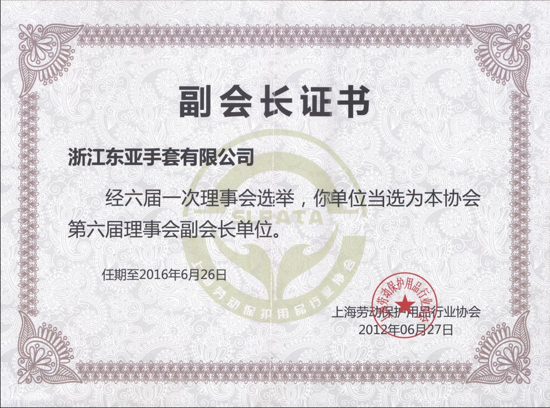 上海劳动保护用品行业协会副会长证书
